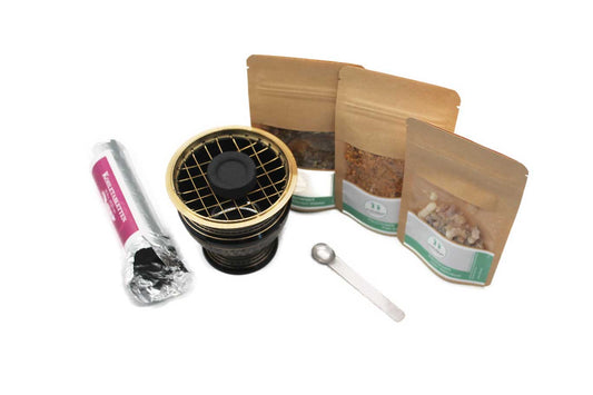 Weihrauchbrenner/Räucherbrenner verstellbar mit verschiedenen Räucherstoffen + Löffel