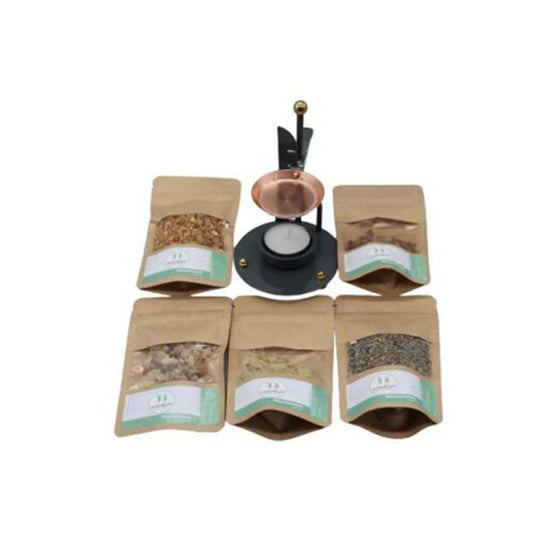 Weihrauchbrenner verstellbar mit 5 verschiedenen Räucherstoffen incl. Löffel