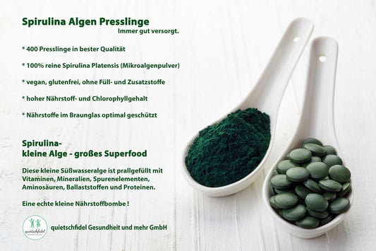Spirulina Algen - Spirulina platensis – 400 Presslinge im Glas