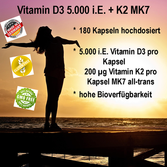 Spare €4,23Vitamin D3 5.000 i.E. + K2 MK7 – 180 Kapseln