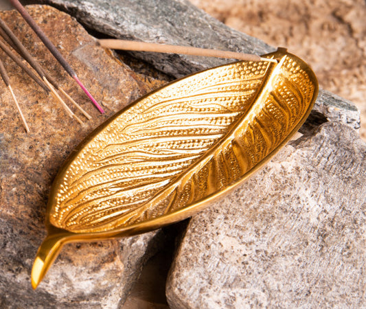 Räucherstäbchenhalter Blatt, goldvergoldet aus Weißmetall